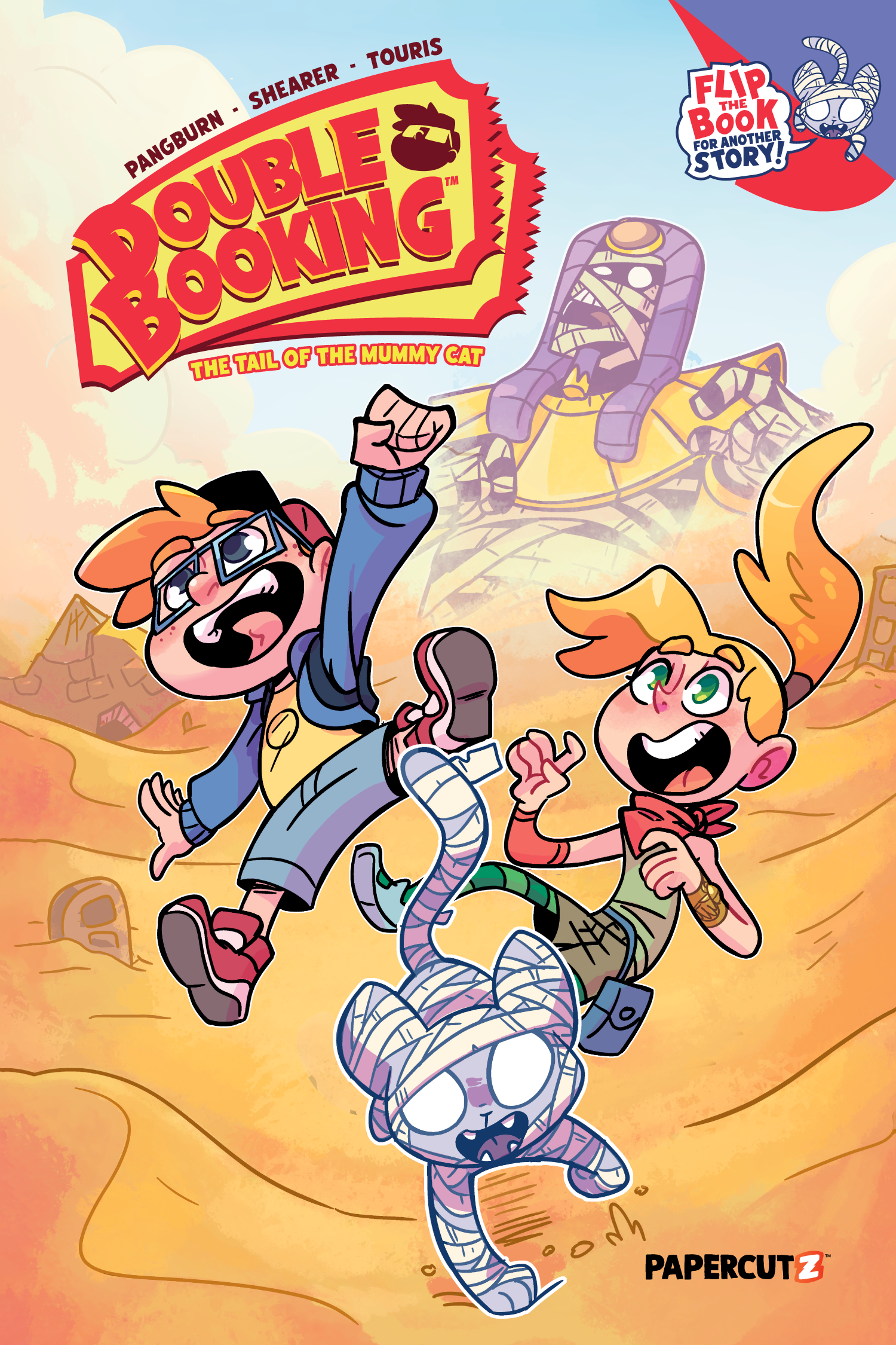 DOUBLE BOOKING is a fun and unique graphic novel that will hit the shelves on April 16th. The story is told from two perspectives (siblings Otto and Nan) on a trip to Egypt with their travel blogger mom.